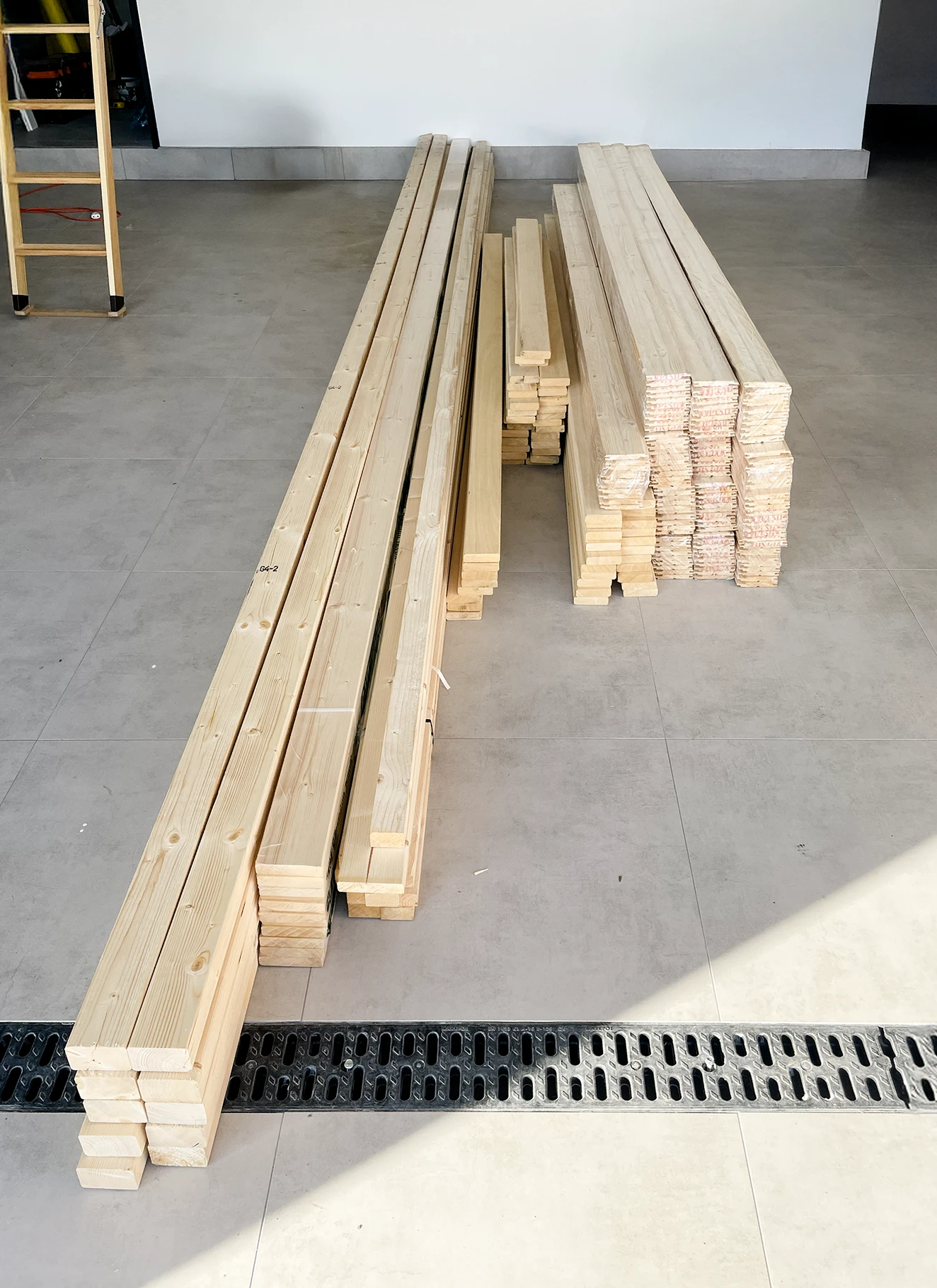 - Schwarze Armatur mit linearem Abfluss: Die elegante und praktische Armatur ist leicht zu reinigen und verleiht der Sauna einen raffinierten Touch.